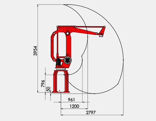 JLRB100特性:手腕負載能力為100Kg,最大工作半徑為2797mm。