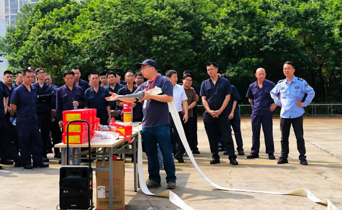 模擬火災現場疏散逃生演練後,消防專業人員現場詳細演示了滅火器、消防水帶以及消防自救呼吸器的正確使用方法和技巧,並組織員工進行實操。受訓人員嚴格按照“一提二拔三握四壓”的操作口訣,成功撲滅了模擬火源,掌握了初期火災撲救的關鍵技能。