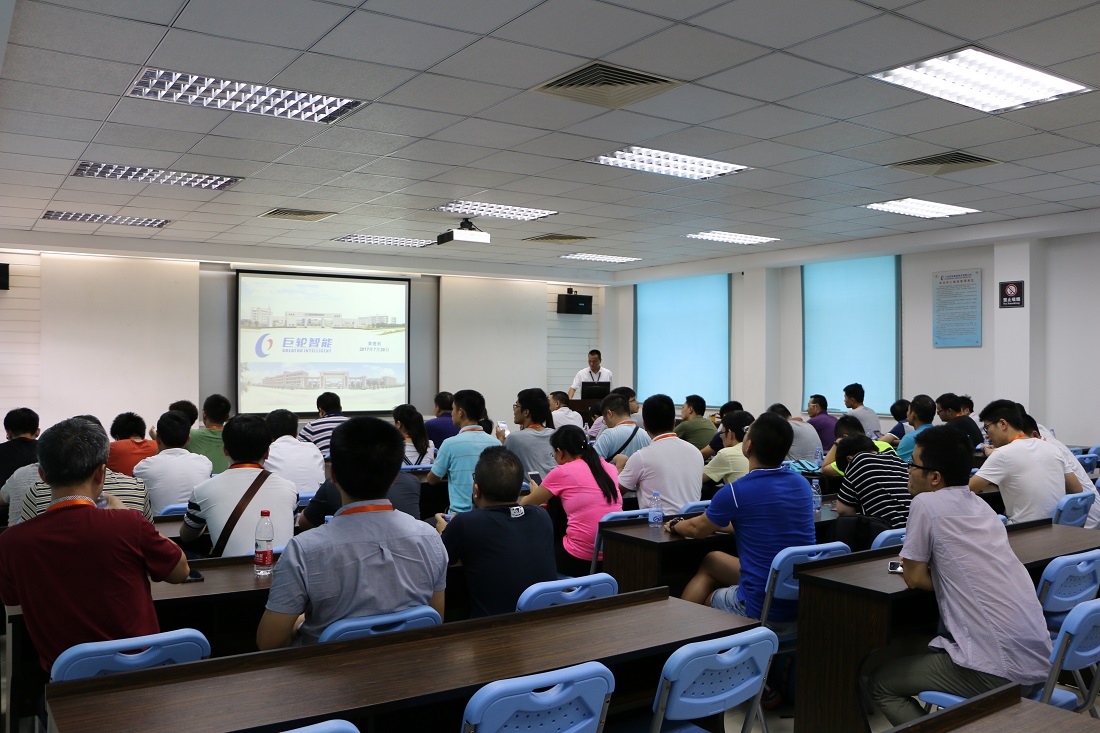 培訓前,由機器人事業部李德華經理向各位參加培訓的老師講解了公司及事業部的發展曆程,並帶領老師們參觀了我司智能車間、硫化機車間及機器人車間。各位老師對公司的廠區建設以及車間的設備情況都讚不絕口,也對自動化設備有了更進一步的認識。