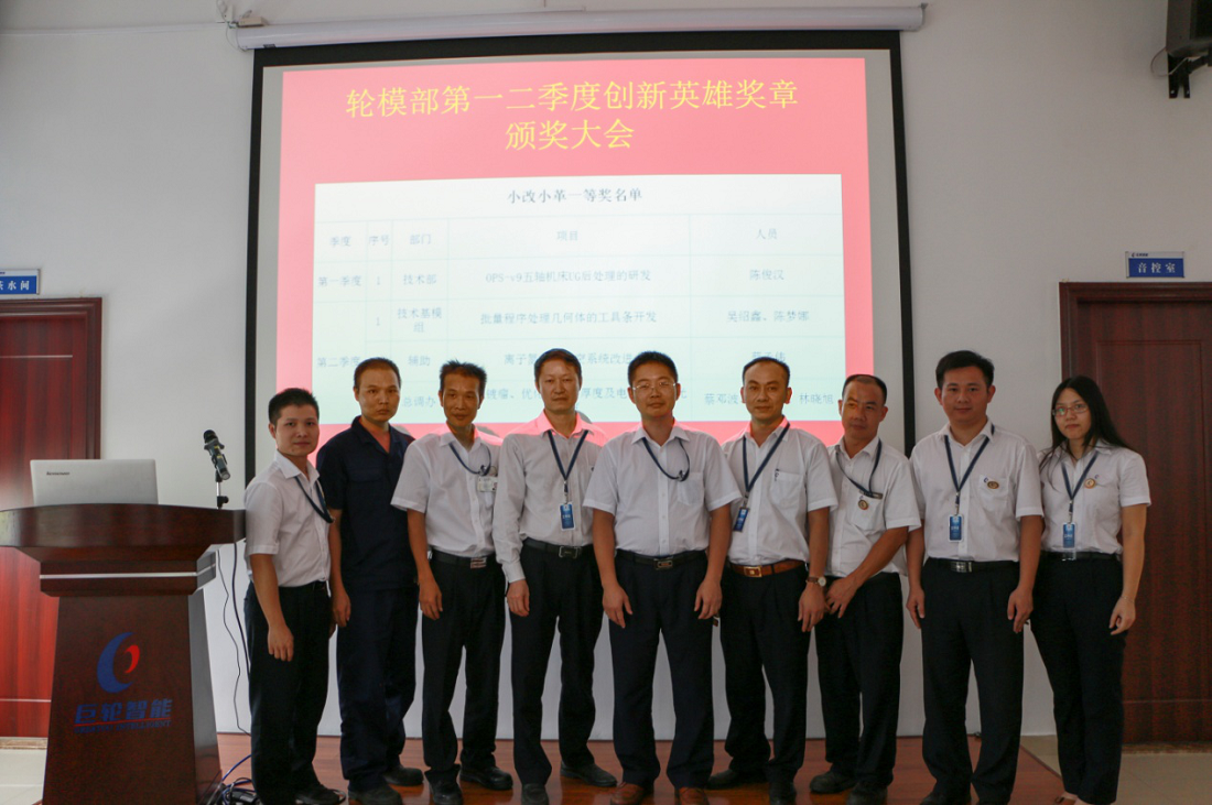 8月2日下午,輪胎模具事業部在公司素食餐館舉行了2017年度第一、二季度“創新英雄獎章”頒獎大會,事業部高管、各部門中層以上幹部、部分技術骨幹及獲得“創新英雄獎章”的員工近百人出席了本次大會。會議由輪模部曾旭釗總工程師主持,會議主題是輪胎模具事業部對上半年的改革創新進行總結並對創新活動成果進行嘉獎。