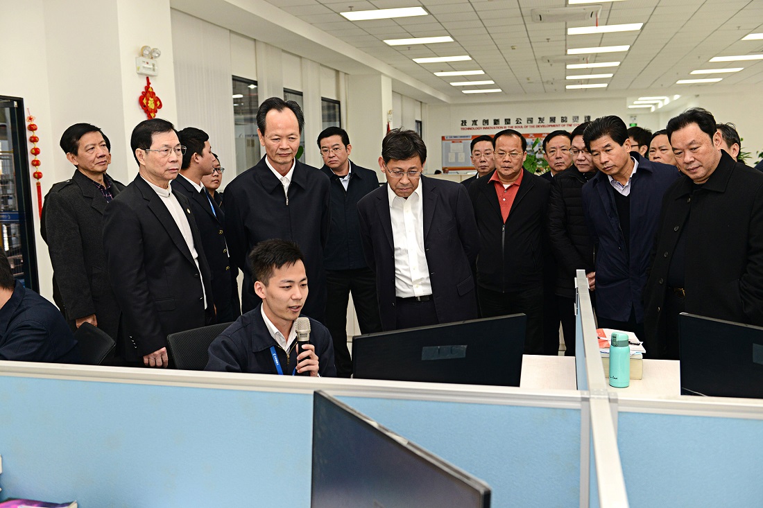 發布時間:2018-02-011月31日下午,揭陽市委書記、市人大常委會主任李水華與市委副書記、市長葉牛平專程率領各級黨政領導一行蒞臨巨輪(廣州)機器人與智能製造有限公司調研考察,受到我司吳潮忠董事長、江秋林顧問、洪潤龍總監的熱情接待。
