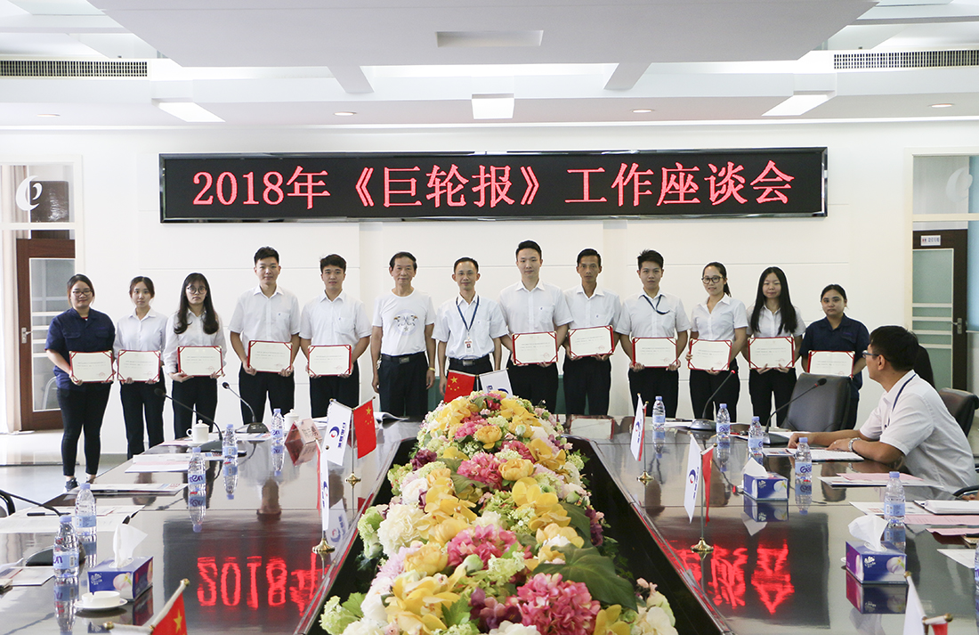7月20日上午,為推進公司企業文化建設,將《巨輪報》辦得更加出彩,2018年《巨輪報》工作座談會在龍港路廠區辦公樓一樓視聽會議室舉行。出席本次座談會的有《巨輪報》吳總編、陳審編,以及《巨輪報》編輯部人員、新一屆通訊員和投稿積極分子。