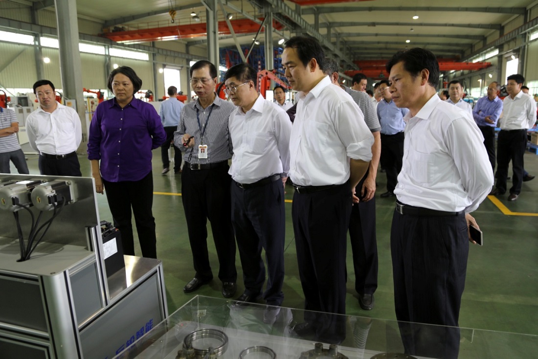Createtime:2016-11-16On the morning of 8 November 2016, Xu Guang, the secretary of Maoming municipal Party committee and the director of Maoming committee of NPC and Li Hongjun, the vice secretary of the municipal Party committee and the mayor of Maoming, accompanied by Yan Zhichan, the secretary of Jieyang municipal Party committee and Chen Dong, the mayor of Jieyang, inspected Greatoo and were warmly received by Wu Chaozhong, the chairman of the board. The guests mainly visited intelligent workshops, giant mold workshops, curing press workshops and industrial robots workshops. During the visit, Xu and Li, with great interest, asked questions about the company’s development.