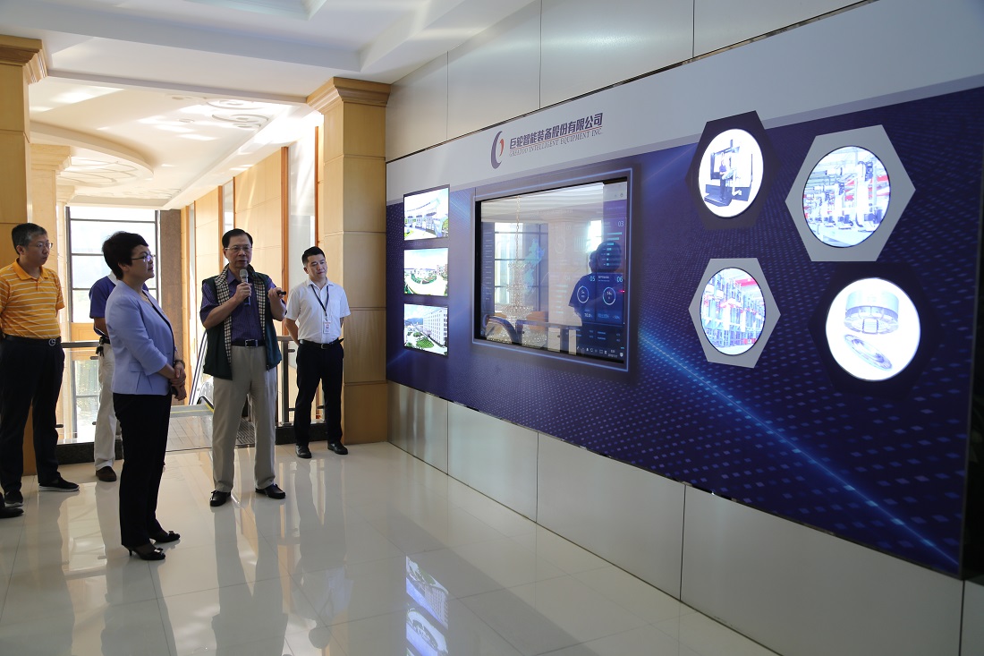 在機器人車間,吳董事長繼續向蔣副市長介紹公司重視研發核心技術、zhelidazaochuangxinshilidefazhanlinian,zhichujulunmuqianzaidangdidangzhenglingdaodedalizhichixia,julunzaihouzhichuantongchanyedejichushang,bajiqirenjijingmijichuangzuoweichanyechuangxinfazhanjigongsikechixufazhandezhongyaoyinqing,chaozhegaominjiexing、高智能化、高集成化方向不斷前進,致力於把巨輪智能建設成為一流的智能裝備開發與製造基地。