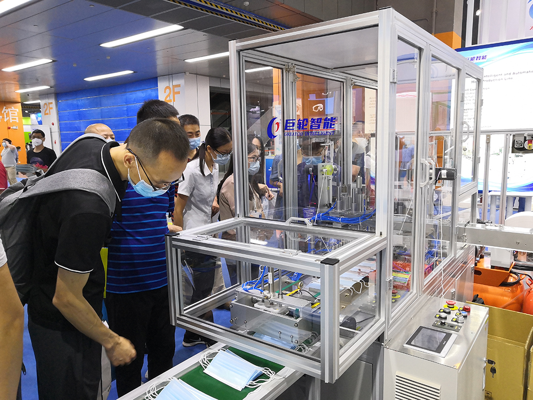 6月10日,全國首個國際防疫物資展覽會——廣州國際防疫物資展覽會在廣州琶洲保利世貿博覽館拉開序幕,成為後疫情時期廣州會展業的“第一展”。巨輪智能攜“智能KN95口罩全自動化生產線”、“智能自識別口罩全自動化生產線”等產品亮相本次展會。據悉,本次展會麵積3.6萬平方米,展位數達850個,設有防疫產品展區、設備展區、綜合服務展區、原材料展區4個展區,參展企業超過400家,專業觀眾預計達6000人次。