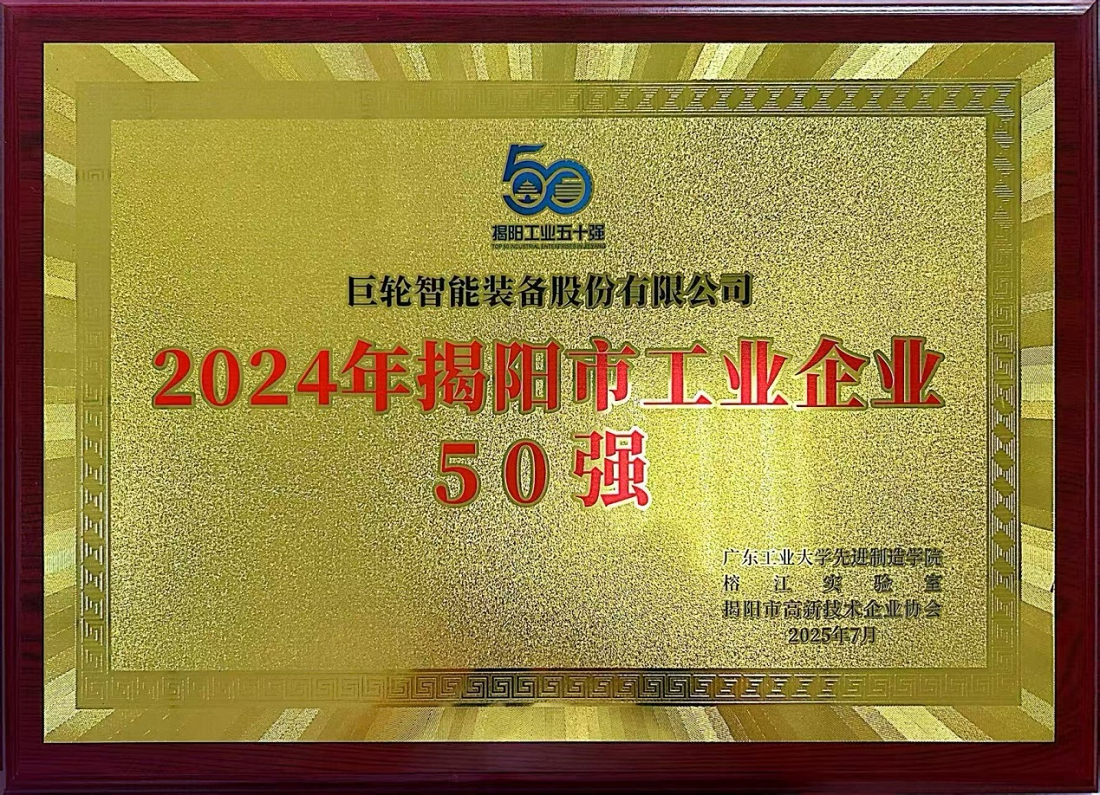 自我市2024年開展揭陽市百強企業活動以來,公司連續兩年榜上有名。此次公司獲得“2024年揭陽市工業企業50強”、“2024年度稅收貢獻突出企業”,是一種榮譽,更是一份責任。未來,巨輪智能將繼續為揭陽的高質量發展貢獻巨輪智慧與力量。