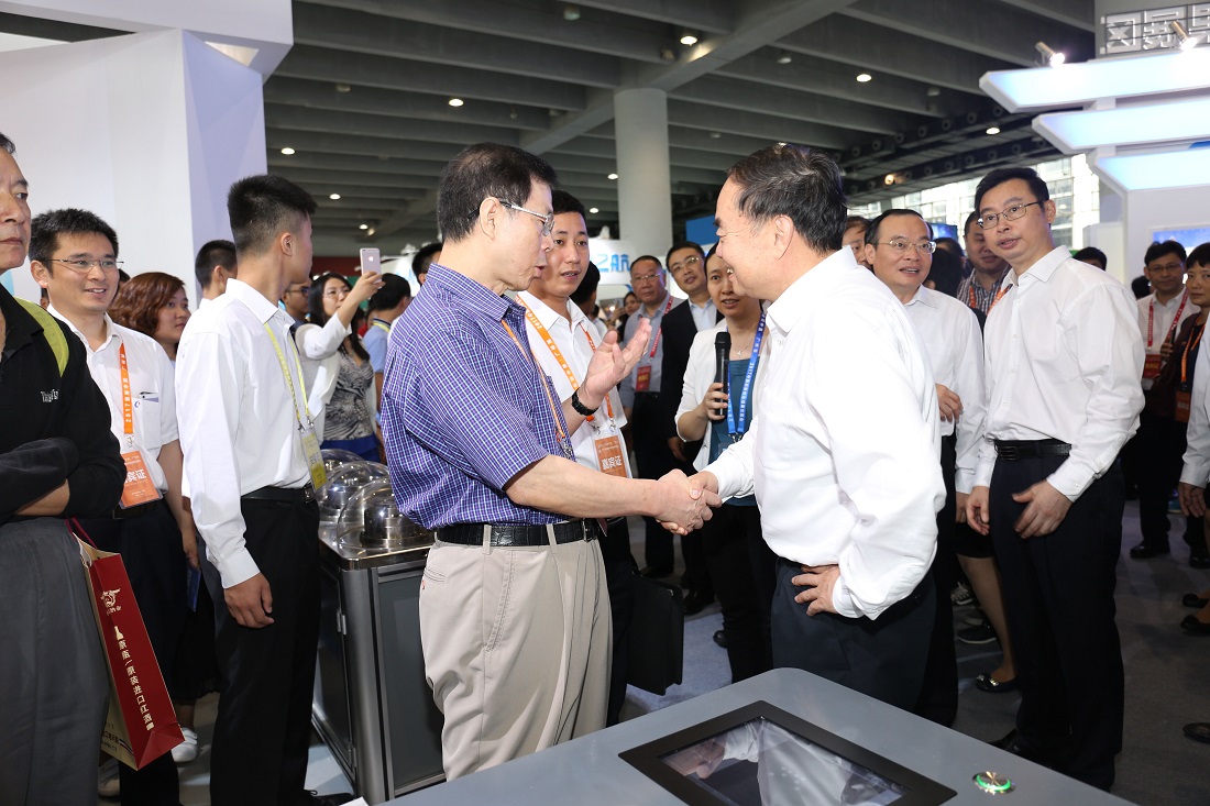 吳潮忠董事長與楊煜俊總經理等來到展會現場,陪同省、市領導參觀了公司展位,吳潮忠董事長向來賓詳細講解了公司參展的機器人功能、用yong途tu等deng,並bing對dui公gong司si未wei來lai發fa展zhan前qian景jing作zuo了le簡jian要yao的de說shuo明ming,來lai賓bin在zai參can觀guan後hou對dui公gong司si科ke研yan工gong作zuo給gei予yu了le高gao度du評ping價jia,希xi望wang企qi業ye要yao堅jian持chi自zi主zhu創chuang新xin的de道dao路lu,繼ji續xu提ti高gao智zhi能neng技ji術shu水shui平ping。