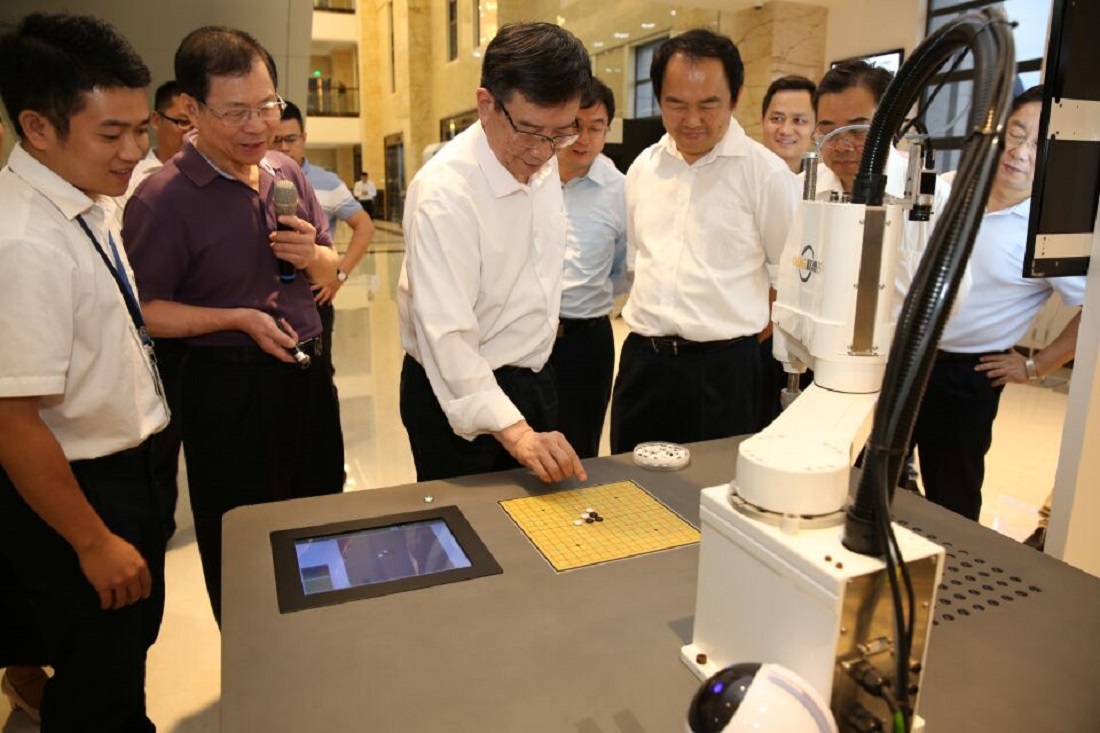 黃副省長仔細聽取彙報,對我司的產業布局表示讚許。隨後,在吳董事長帶領下,調研組領導一行分別觀看了鑽攻自動化生產線、高速雕銑加工中心等演示,近距離觀看RV減速器及控製係統等機器人核心部件、雙DELTA機器人、機器人視覺係統以及工業機器人在各行、各業、各領域的應用案例等。
