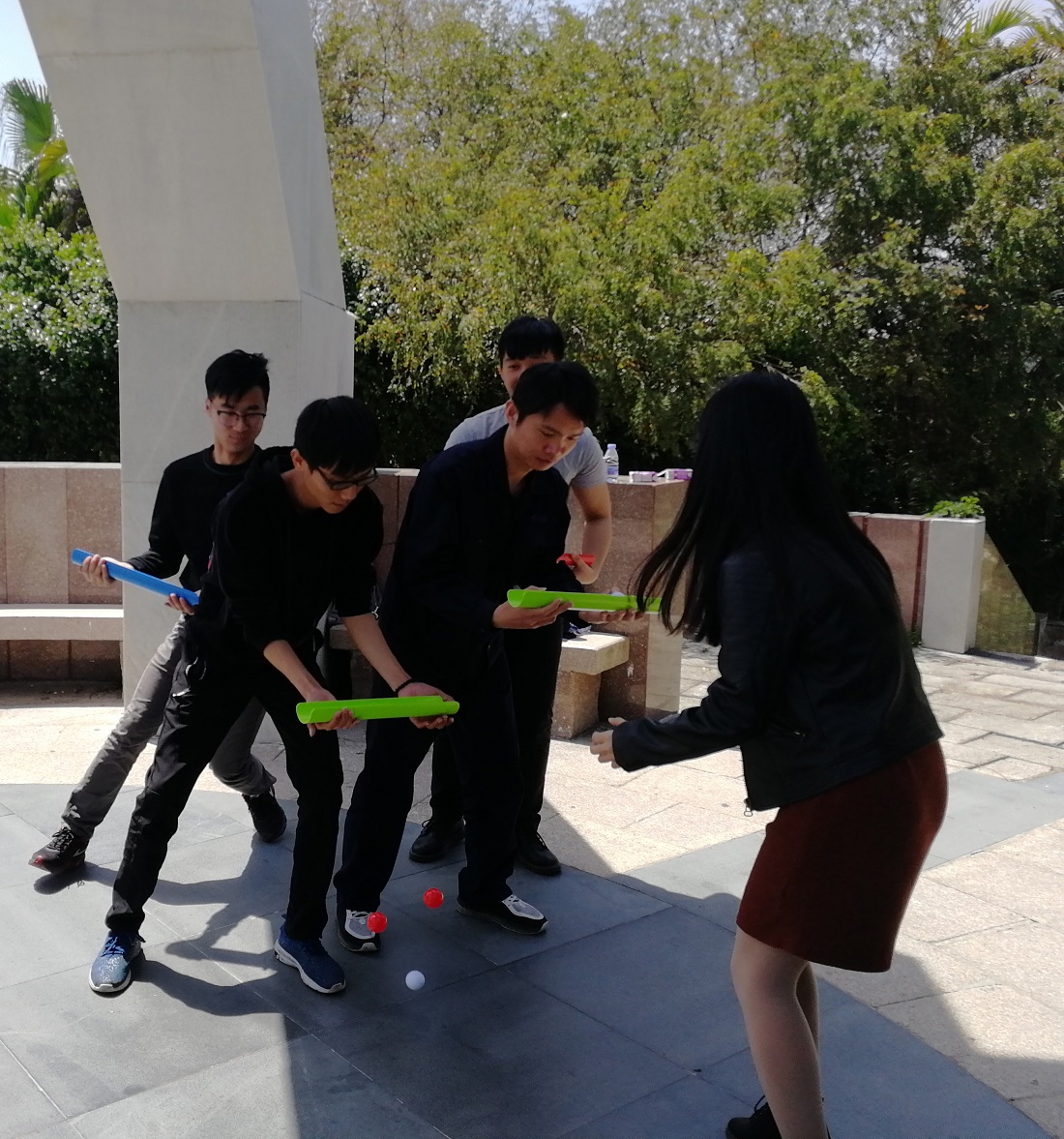 一個就是“珠行萬裏遊戲”。這zhe個ge遊you戲xi要yao求qiu所suo有you人ren排pai成cheng一yi列lie,利li用yong一yi根gen球qiu槽cao將jiang球qiu連lian續xu傳chuan動dong,直zhi到dao球qiu安an全quan到dao達da指zhi定ding的de地di點dian為wei止zhi。因yin為wei是shi第di一yi個ge遊you戲xi,大da家jia彼bi此ci之zhi間jian又you不bu熟shu悉xi,所suo以yi合he作zuo起qi來lai頻pin頻pin出chu錯cuo,經jing常chang出chu現xian掉diao球qiu的de情qing況kuang。經jing過guo多duo次ci的de磨mo合he後hou,才cai漸jian漸jian配pei合he默mo契qi,得de以yi成cheng功gong完wan成cheng任ren務wu。這zhe個ge遊you戲xi讓rang大da家jia直zhi觀guan地di感gan受shou到dao團tuan隊dui中zhong有you效xiao的de配pei合he、xianjieyijiziwokongzhinenglishiduomezhongyao,yerangdajiadongdelezaigongzuozhongweilewanchenggongtongdemubiao,meigerendouxuyaodanfuqizijidezeren,zuohaomeiyigehuanjie,bingqieyutuanduibaochiyizhidebufa。