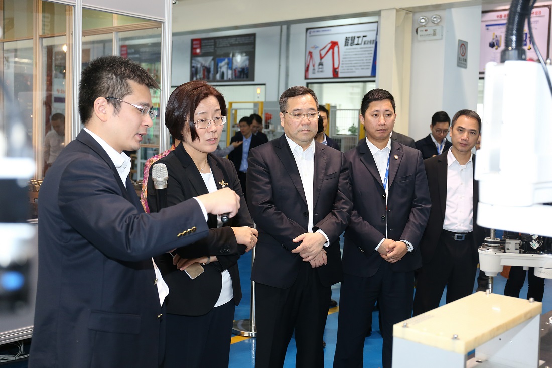 我(wo)司(si)首(shou)先(xian)以(yi)舞(wu)獅(shi)機(ji)器(qi)人(ren)表(biao)演(yan)向(xiang)考(kao)察(cha)團(tuan)致(zhi)歡(huan)迎(ying)問(wen)候(hou),楊(yang)總(zong)經(jing)理(li)介(jie)紹(shao)到(dao),巨(ju)輪(lun)機(ji)器(qi)人(ren)舞(wu)獅(shi)多(duo)次(ci)受(shou)邀(yao)參(can)與(yu)科(ke)技(ji)展(zhan)覽(lan),該(gai)機(ji)器(qi)人(ren)通(tong)過(guo)舞(wu)動(dong)獅(shi)子(zi)體(ti)現(xian)機(ji)器(qi)人(ren)的(de)敏(min)捷(jie)性(xing)、靈活性,以及機器人技術在文化產業發展創新領域的應用。隨後楊總帶領考察團依次參觀了機器人控製器、自主研發的RV減速器、機器人拋光打磨單元、高速雕銑加工中心等高端裝備。參觀過程中,吳忠瓊副省長對我司的機器人呈現出濃厚的興趣,並在洪總監的指引下,通過“一鍵啟動”按鈕,啟動我司焊接機器人對高精度工件進行無人化加工。洪總監還介紹到,公司自主研發的機器人核心零部件RV減速器已打破國外在該項技術上的壟斷,擁有自主知識產權,在機械性能、工業製造上足以與全球頂尖減速器媲美。