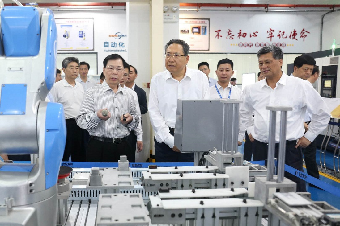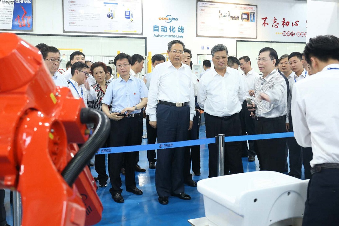 發布時間:2018-05-135月13日,安徽省委書記、省人大常委會主任李錦斌,省委副書記、省長李國英率領安徽省黨政代表團,在廣東省委副書記,省長馬興瑞和廣州市長溫國輝等省市領導的陪同下蒞臨巨輪(廣州)機器人與智能製造有限公司考察調研,受到我司吳潮忠董事長等公司領導的熱情接待。