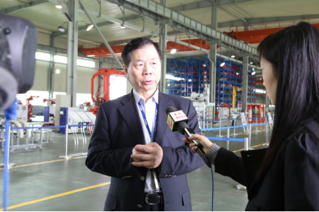 (巨輪智能裝備股份有限公司董事長吳潮忠正在接受揭陽電視台采訪)