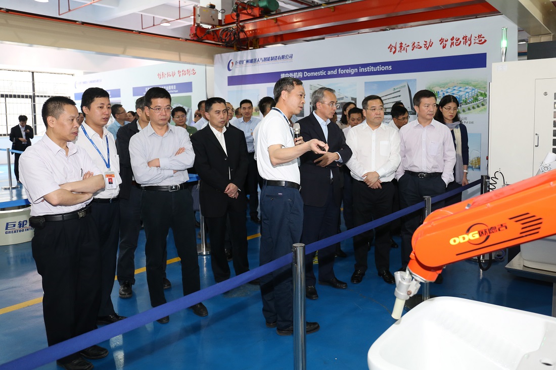 Createtime:2018-04-25On April 25th, Cai Chaolin, member of the Standing Committee of the Guangzhou Municipal Committee and Secretary of the Nansha District Party Committee, led a party and government delegation from Nansha District of Guangzhou City to visit the Greatoo (Guangzhou) Robots and Intelligent Manufacturing Co.,Ltd. Accompanied by Chen Xiaohua, the district head of the Huangpu District, they was warmly received by Zheng Xuxu, the president of our company, as well as Jiang Qiulin consultant, and Hong Runlong director.