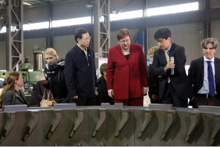 In the intelligent workshops, Chairman Wu gave Mrs. Gleich and other guests a detailed introduction of the company抯 development and the honors it has won. Established in 1992, Greatoo is the first listed automobile radial tire molds company with leading technology in China. Along the high-end intelligent industry chain, the company expanded its industries, from the professional manufacturing of radial tire molds to the present modern industrial system with four main industries, including radial tire molds, hydraulic curing presses, precision nc machine tools and industrial robots. During the visit, Mrs. Gleich payed much attention to OPS Ingersoll, a German Ltd with Greatoo抯 joint stock. OPS is located in Burbach, Germany. Early in 2011, in order to extend its industry chain, optimize its product structure, build up new economic growth and enhance international competitiveness, Greatoo shared the stocks of OPS and firstly realized the cooperation in high-end manufacturing industry between Germany and China, setting a good example for Germany and China抯 cooperation in industry 4.0.